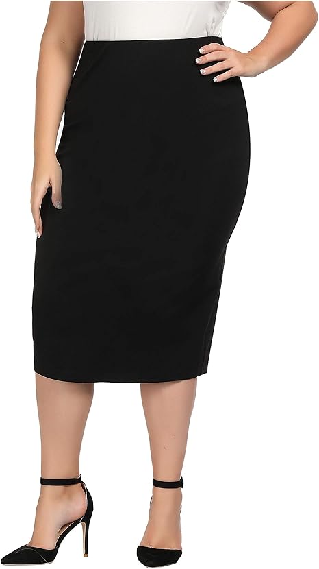 Chicwe Damen Grosse Grossen Strecken Lange Tailored Wadenlange Bleistiftrock Mit Elastischer Bund Casual Und Arbeit Rock Schwarz 1x Amazon De Bekleidung