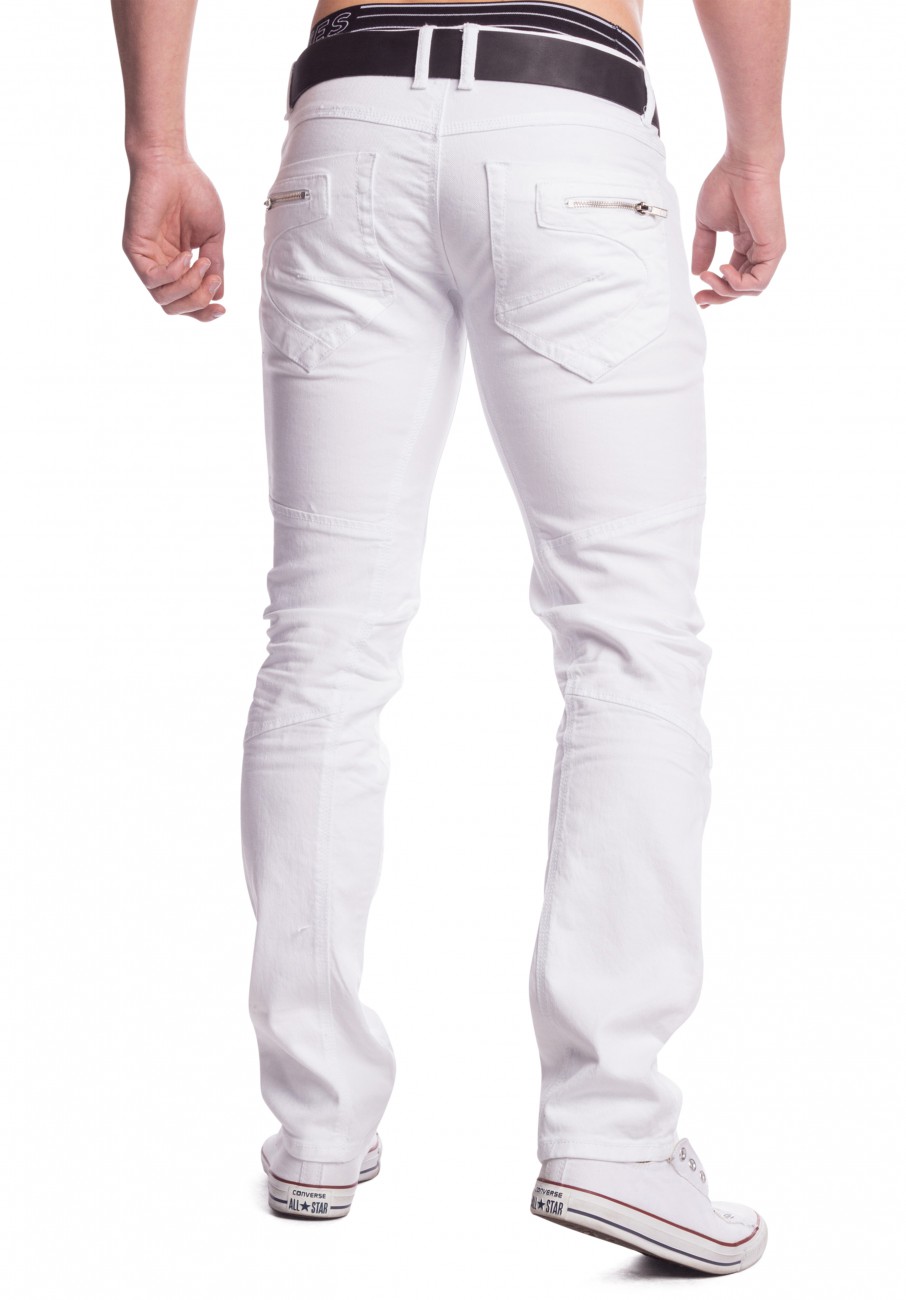 Herren Biker Style Zipper Straight Jeans Hose Schwarz Weiss Blau Clubwear Neu Ebay