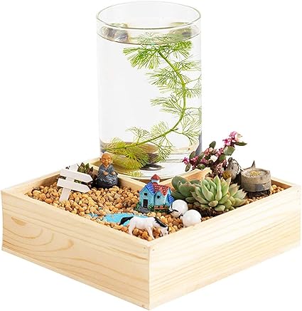 Xlsqw Fish Tank Blumentopf Aquarium Miniatur Landschaft Aquarium Aquaponic Wasser Garten Dekor Holz Glas Fur Zimmer Office Home A Amazon De Kuche Haushalt
