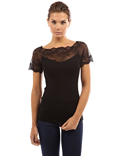 Even Odd T Shirt Damen In Schwarz Oberteil Edel Ohne Armel Und Mit Spitze Tshirt Elegant In Kurzarm Spitzenshirt Frauen In Unifarben Amazon De Bekleidung
