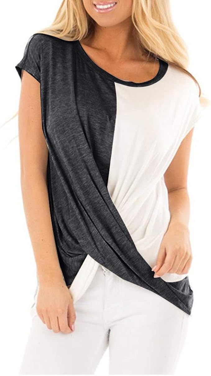 Zegeey Damen T Shirt Kurzarm Rundhals Sommer Lassige Lose Oberteil Bluse Shirts Weste Pullover Tunika Schwarz Weiss Amazon De Bekleidung