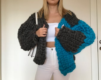 Chunky Gebreide Cardigan Chunky Garen Jas Chunky Gebreide Etsy Chunky Knit Cardigan Oversized Knitted Sweaters Boho Coat