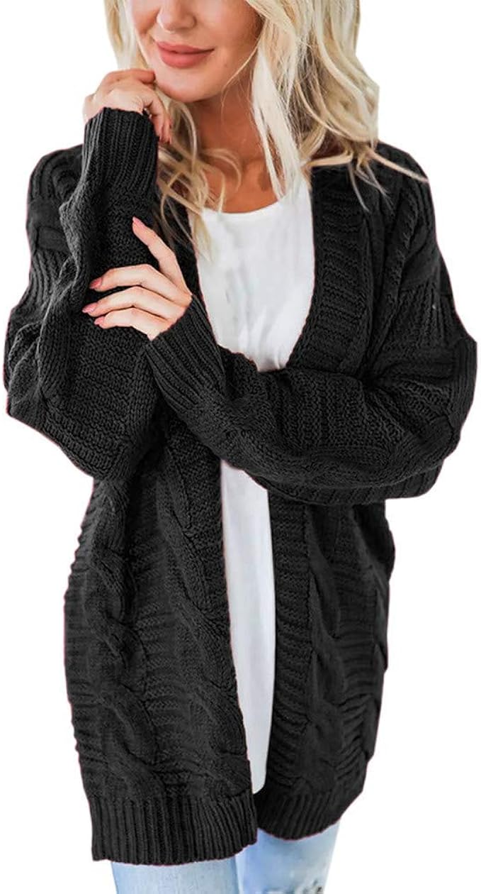 Askwho Damen Jacke Mantel Cardigan Women S Chunky Knitted Cardigan Women S Long Sleeve Knitted Cardigan With Open Front Pullover Casual Outerwear Wool Jacket Cardigan Multicolour One Size Black Amazon Co Uk Clothing