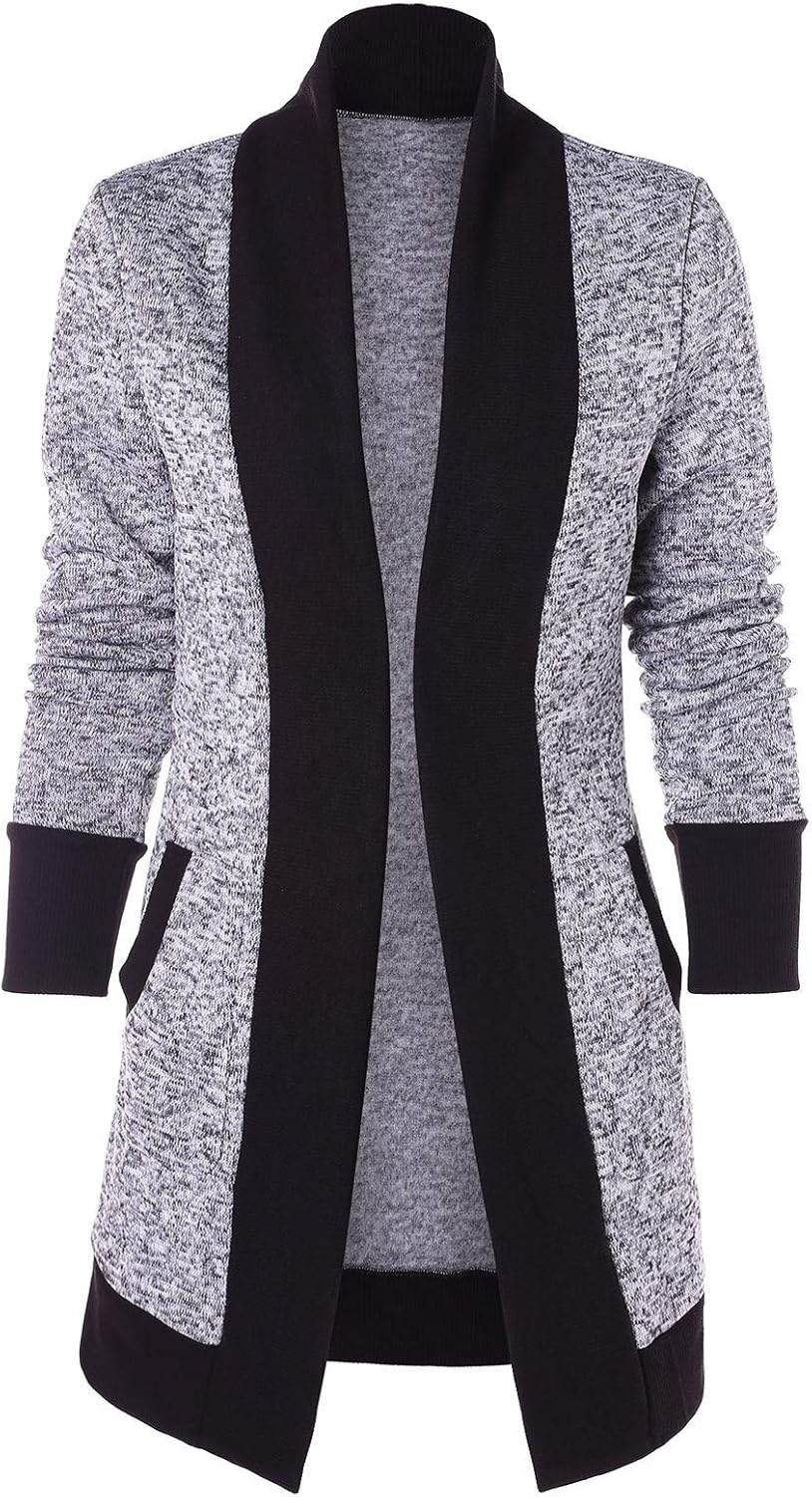 Dressuwomen Damen Stich Taschen Mid Long Cardigan Fleece Kontrast Farben Mantel Amazon De Bekleidung