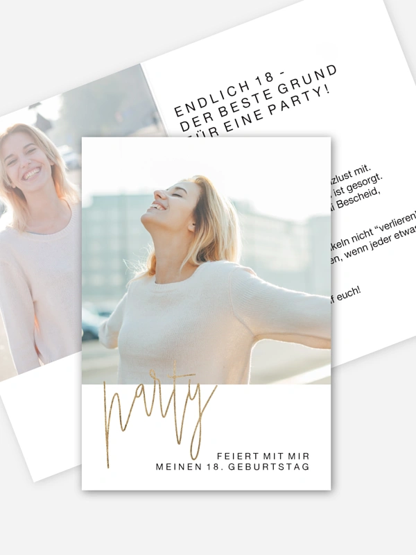 Startseite > Geburtstagskarten > Einladung runder Geburtstag > Einladungskarten 18 Geburtstag > Party Girlande 18 Einladungskarte 18 Geburtstag Party Girlande 18 Flache Karte Klappkarte Doppelklappkarte Anzahl. Die Volljährigkeit ist ein Ereignis, das jeder mit einer tollen Party krönen will Für diesen besonderen Anlass gibt es bei uns die passenden Einladungskarten zum 18Geburtstag in vielen verschiedenen Designs Ob Partybook im Stil eines sozialen Netzwerks, Partypost in Form eines Paketscheins oder polizeiliche Vorladung – unsere. Einladungskarten zum 18 Geburtstag selbst gestalten Coole Einladungskarten, individuell anpassbar Hochwertiges Papier Jetzt selbst gestalten!.