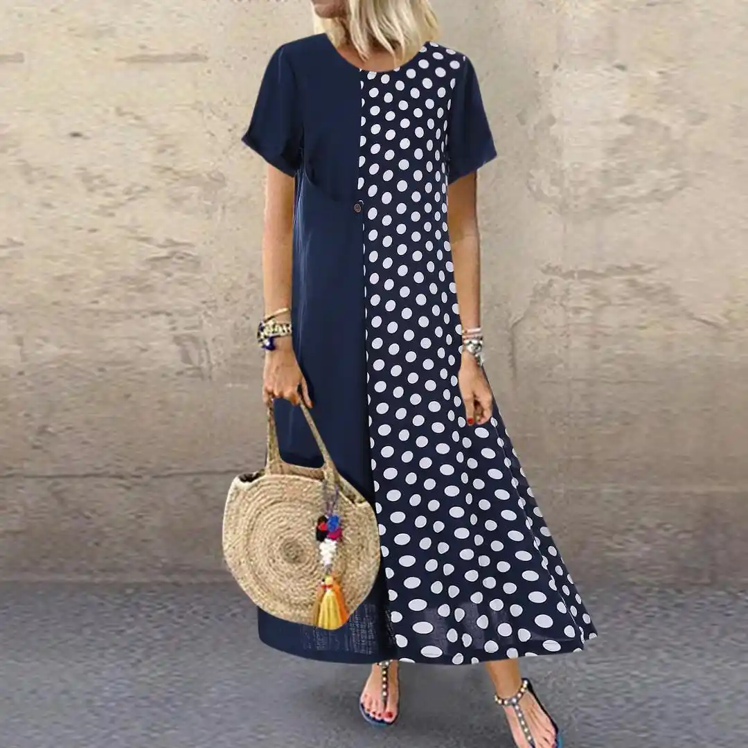 Frauen Sommer Patchwork Sommerkleid Elegante Polka Dot Midi Kleid Mode Kurzarm Lange Vestidos Plus Grosse Tunika Robe Kaftan Kleider Aliexpress