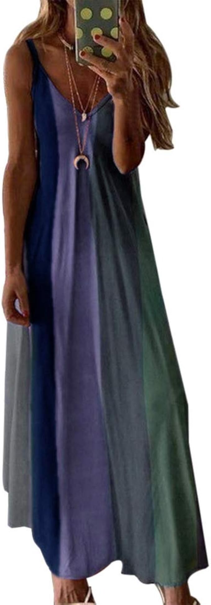 Hirolan Ubergrosse Maxikleid Dame Strand Sommerkleid Lange Kleider Armellos Partykleid Festliches Kleid Grosse Grossen Damen Gestreift Lange Boho Kleid