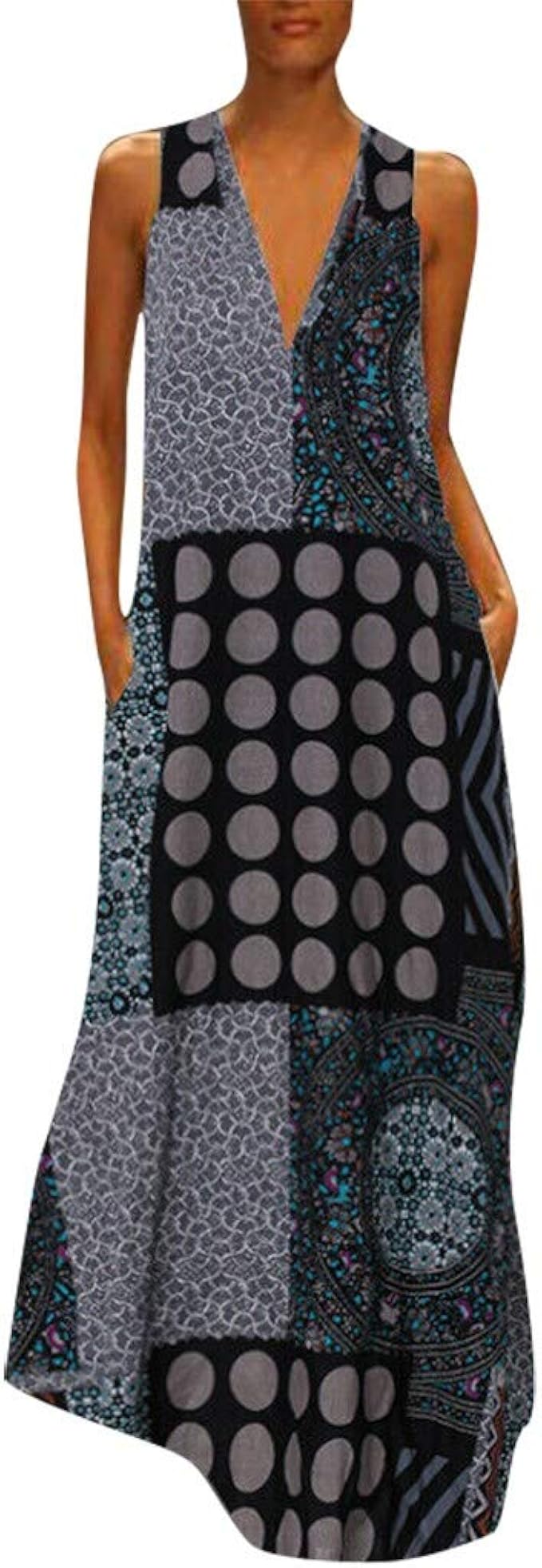Sfit Damen Maxikleider Sommerkleider Armellos V Ausschnitt Lange Kleider Bunte Druck Kleid Grosse Grossen Freizeit Strandkleider Amazon De Bekleidung