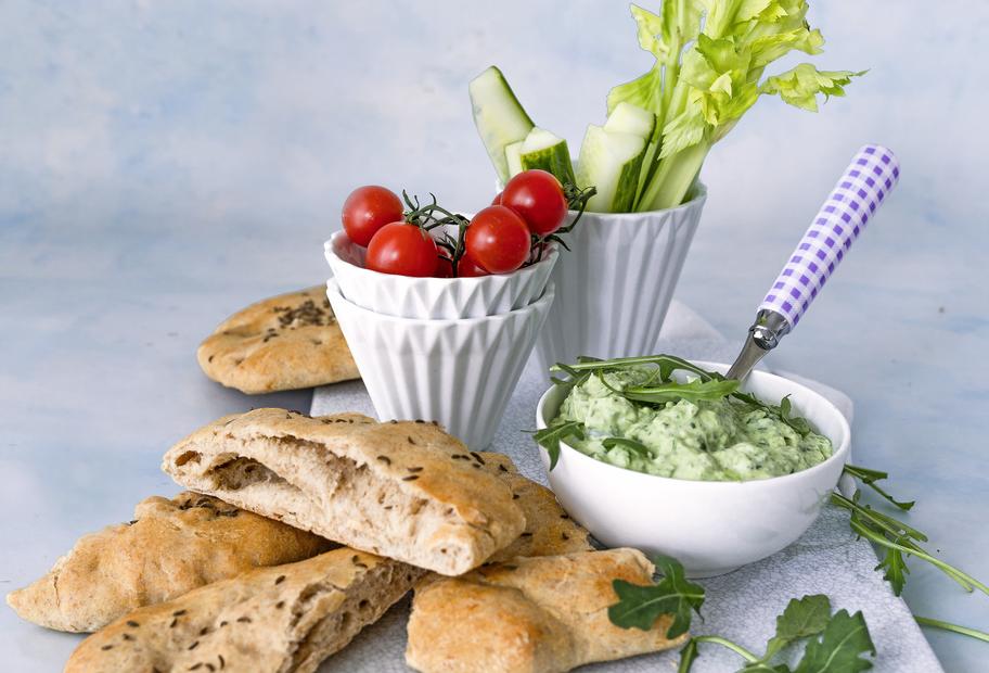 Dinkelvollkornfladen Mit Avocado Dip Und Rohkost Fur Den Thermomix