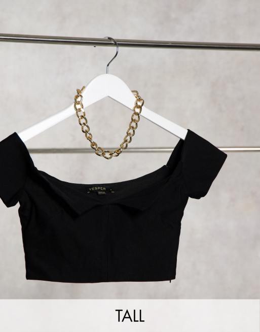 Vesper Tall Schulterfreies Oberteil Mit Kurzem Schnitt Und Puffarmeln In Schwarz Evesham Nj