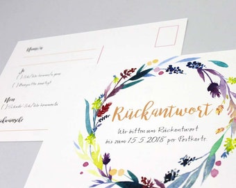 Floral Wedding Invitation Answer Card Postcard Answer Cards Wedding Reply Invitation Invitation Cards Wedding In Hochzeitseinladung Antwortkarten Gastebuch Hochzeit