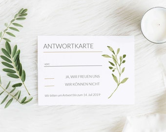 Die floralen Elemente verleihen der Kreation eine. Muster für eine Antwortkarte Lesezeit < 1 Minute Dieses Muster für eine Antwortkarte können Sie für die verschiedensten Gelegenheiten verwenden, vom Firmenjubiläum bis zur Hochzeit Der Vorteil eines Antwortvordrucks Sie erhalten übersichtlich alle Informationen, die Sie benötigen Und für die geladenen Gäste ist eine vorgedruckte Antwort einfach sehr bequem. Die Antwort muss von Ihren Freunden auf der Karte "Romantic Vintage" nur noch angekreuzt und an Sie zurückgeschickt werden.