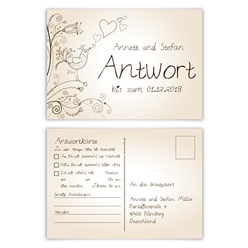 30 X Antwortkarte Hochzeit Hochzeitskarten Antwort Postkarte Liebesbaum Amazon De Burobedarf Schreibwaren