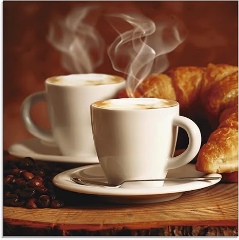 Artland Glasbilder Wandbild Glas Bild Einteilig x Cm Quadratisch Kaffee Coffee Cafe Cappuccino Kaffeebohnen Croissant Fruhstuck T5xo Amazon De Kuche Haushalt