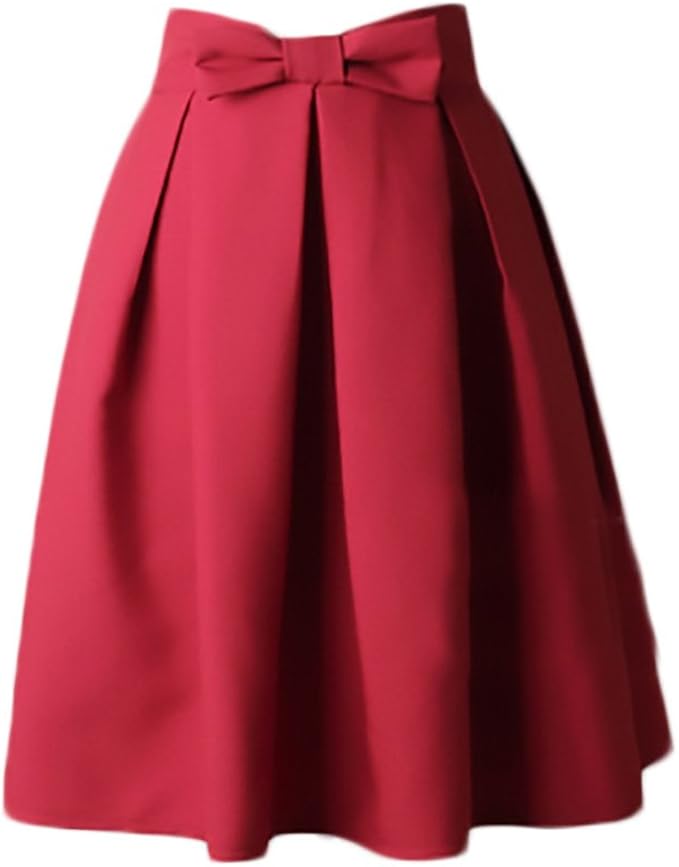 Rockabilly Damen Elegant Kurz Rock A Linie Swing Vintage Swing High Waist Bowknot Frauen Retro Einfarbig Uni Farben Bekleidung Plisseerock Faltenrock Minirock Amazon De Bekleidung