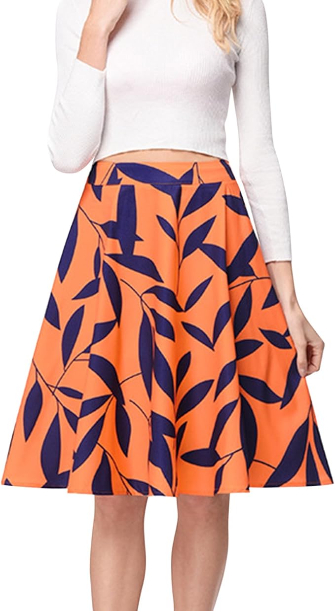 Semen Damen Faltenrock Kurz Hoch Taille Blattdruck Swingkleid Rockabilly Tanzkleid A Linie Plisseerock Knielang Midi Skater Rocke Sommer Amazon De Bekleidung