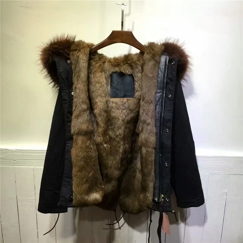 Unisex Style S Xxl Coffee Brown Rabbit Fur Inside Jacket Winter Warm Real Fur Short Black Parka Parka Fur Hood Fur Beetleparka Aliexpress