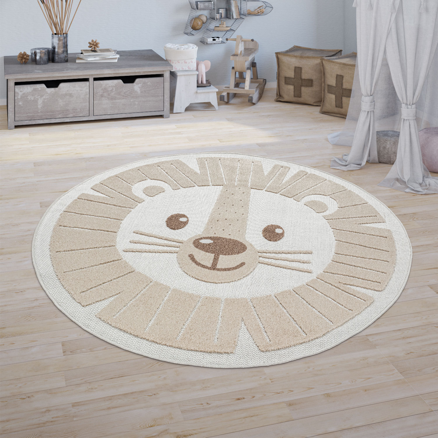 Kinderzimmer Teppich Kinder Junge Madchen Rund Spielteppich 3d Optik Lowe Beige Ebay