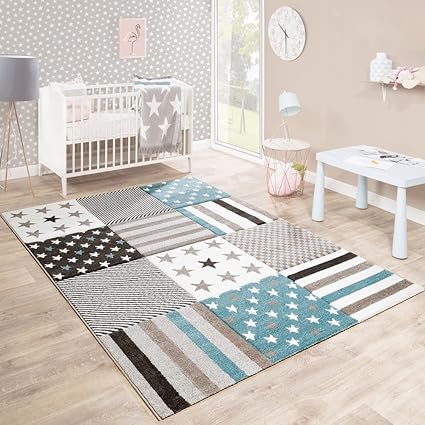 Kinderzimmer Teppich Sterne Karo Beige Wunschzimmer