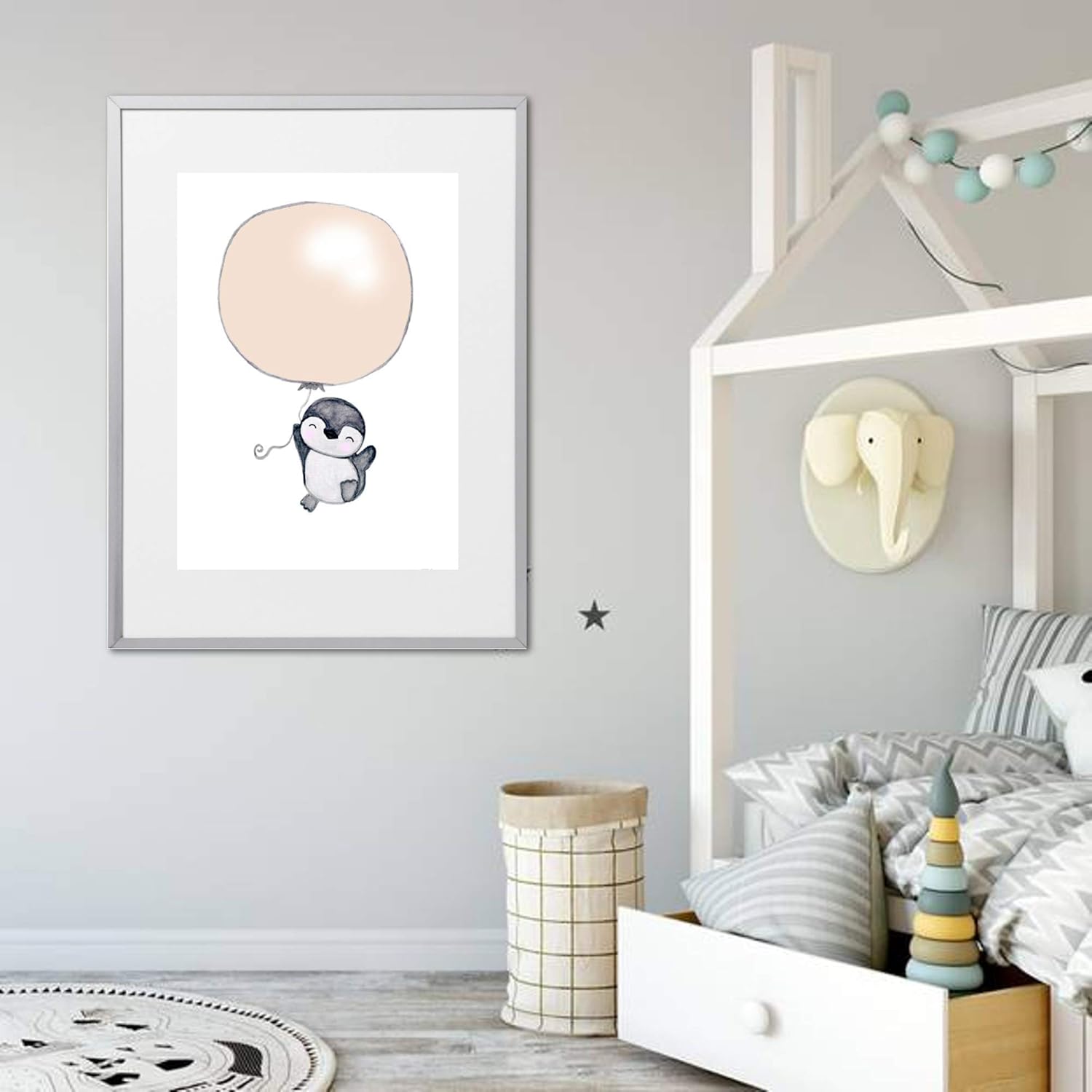 Kinderzimmerdekoration Bild Kinderzimmer Poster Pinguin Luftballon Babyzimmer Deko Junge Madchen Beige Grau Handmade Produkte Luxdental Si