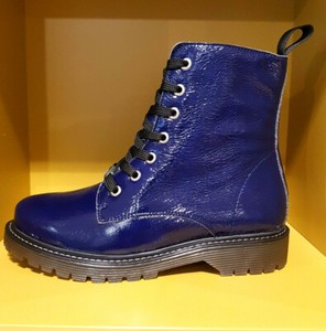 Blk1978 Damen Biker Boots Stiefel Schnurstiefel Lacklederschuhe 7 Loch Navy Blau Ebay