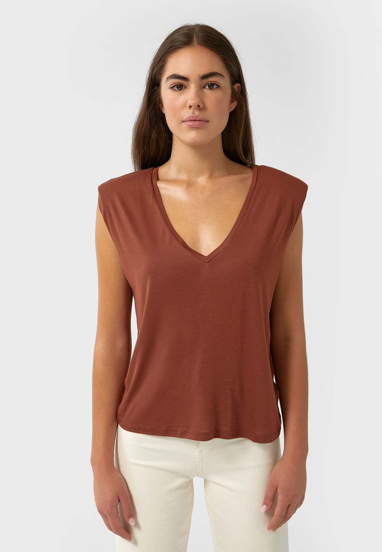 Stradivarius Mit V Ausschnitt Und Schulterpolstern Top Brown Braun Zalando De