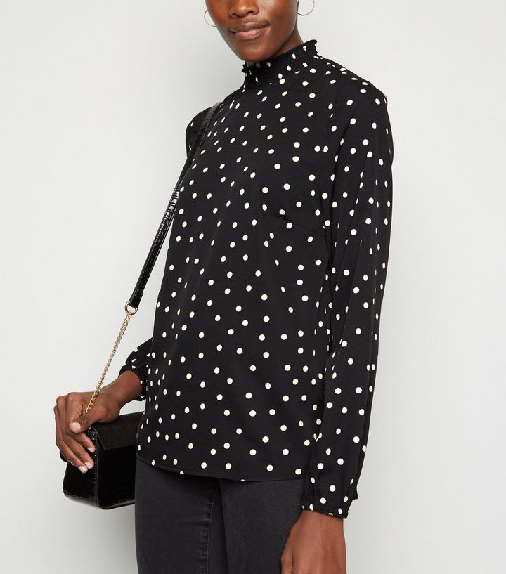 Tall Schwarzes Top Mit Gerafftem Ausschnitt Und Punktmuster New Look