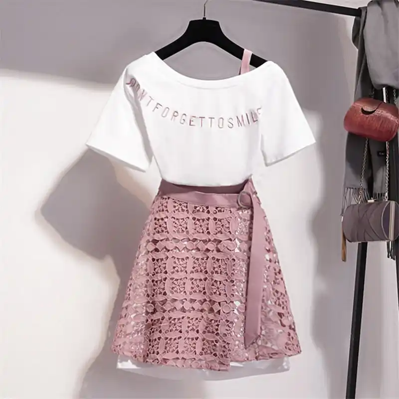 Spring Summer Women Fashion 2 Piece Suit Slash Collar Off Shoulder Long T Shirt Hollow Out Lace Skirt Suits Skirts Set Women S Sets Aliexpress