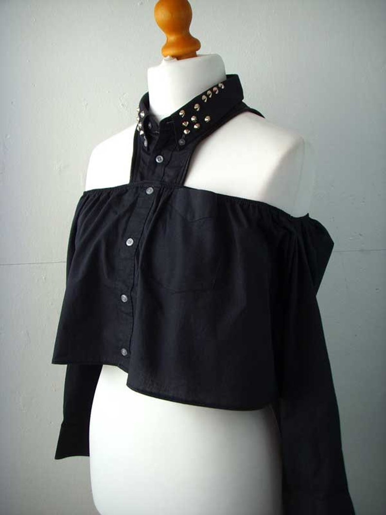 Off Shoulder Bardot Crop Top Studded Collar Shirt Upcycled Etsy