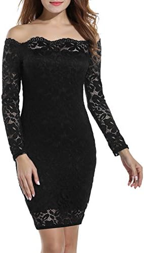Beyove Damen Vintage Kleid Schulterfrei Spizenkleid Langarm Knielang Festlich Cocktail Abendkleid M Schwarz 1 Jetzt Unschlagbar Gunstig Shopping24 De