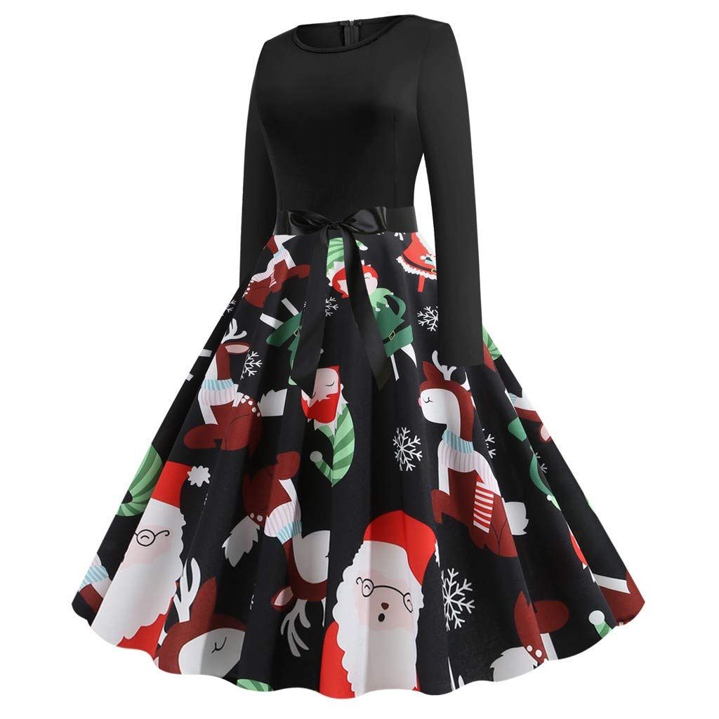 Jingobel Weihnachtskleid Damen Kleider 50er Jahre Vintage Langarm Festlich Kleid A Linie Swing Weihnachts Kleidung Cocktailkleid Rockabilly Cosplay Karneval Party Kostum