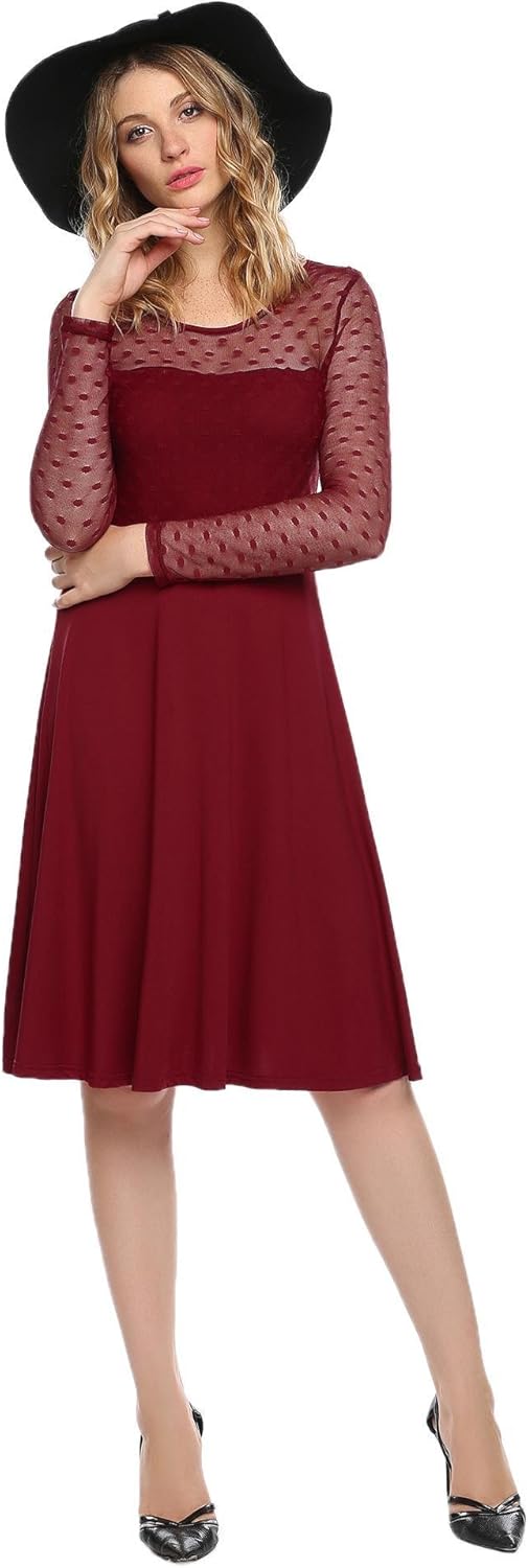 Damen Acevog Damen Tull Kleid Elegant A Linie Langarm Knielang Festliches Minikleid Abendkleid Partykleid Cocktailkleid Bekleidung Fade Ie