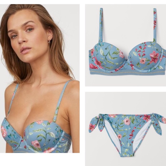 H M Swim Hm Floral Super Push Up Bikini Set Nwt 34c Blue Poshmark