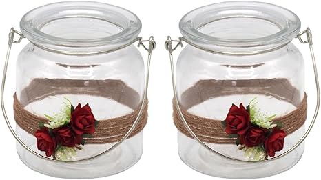 Zauberdeko 2 Windlichter Mit Henkel Hochzeit Vintage Rot Rose Kerzenglas Tischdeko Jill Amazon De Kuche Haushalt