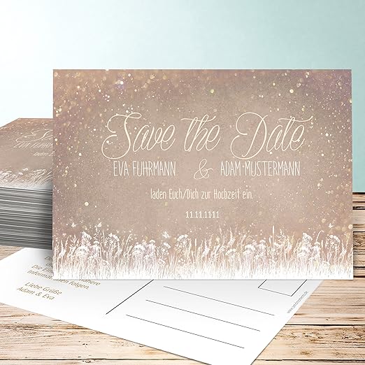 Save The Date Karten Online Gestalten Zauberlicht 25 Karten Horizontal Einfach 145x100 Braun Amazon De Kuche Haushalt