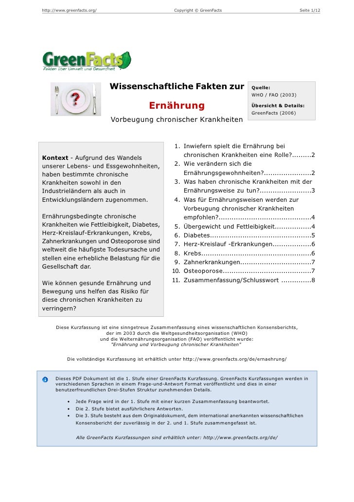 Die Erkrankung kommt in schmerzhaften Schüben Allerdings können Betroffene das Risiko von Anfällen mit Hilfe der richtigen Ernährung senken Worauf Sie achten sollten. Warum eine gesunde Ernährung Krankheiten vorbeugt Die richtige Ernährung bei Krebs Die richtige Ernährung bei HerzKreislaufErkrankungen Wundermittel gegen Diabetes Ernährungsbedingte Krankheiten verhindern Nützliche Definitionen „Lass die Nahrung Deine Medizin sein und Medizin Deine Nahrung“ – Hippocrates. 11 Chronische Krankheiten sind lang andauernde Krankheiten, die nicht ansteckend und weitgehend vermeidbar sind Sie sind weltweit die häufigste Todesursache und stellen eine erhebliche Belastung für die Gesellschaft dar Dies gilt insbesondere für Krankheiten wie Fettleibigkeit, Diabetes, HerzKreislaufErkrankungen, Krebs, Zahnerkrankungen und Osteoporose.