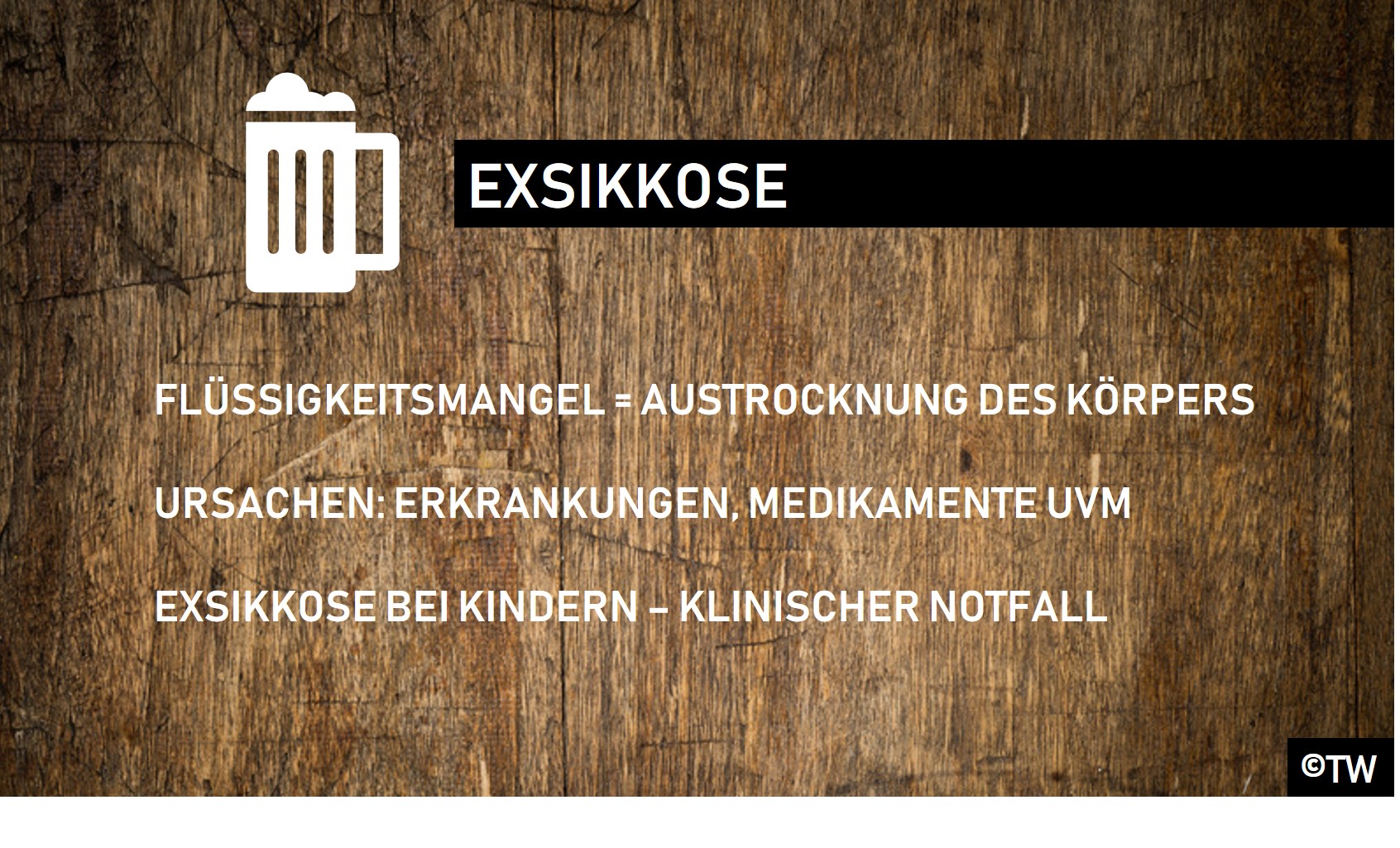 Ursache ist eine Störung des Volumenhaushalts (Verlust von. Wasser trinken ist lebenswichtig!. Synonyme Dehydratisierung, Exsikkose, Dehydration, Dehydrierung, Hypohydratation, Austrocknung;.