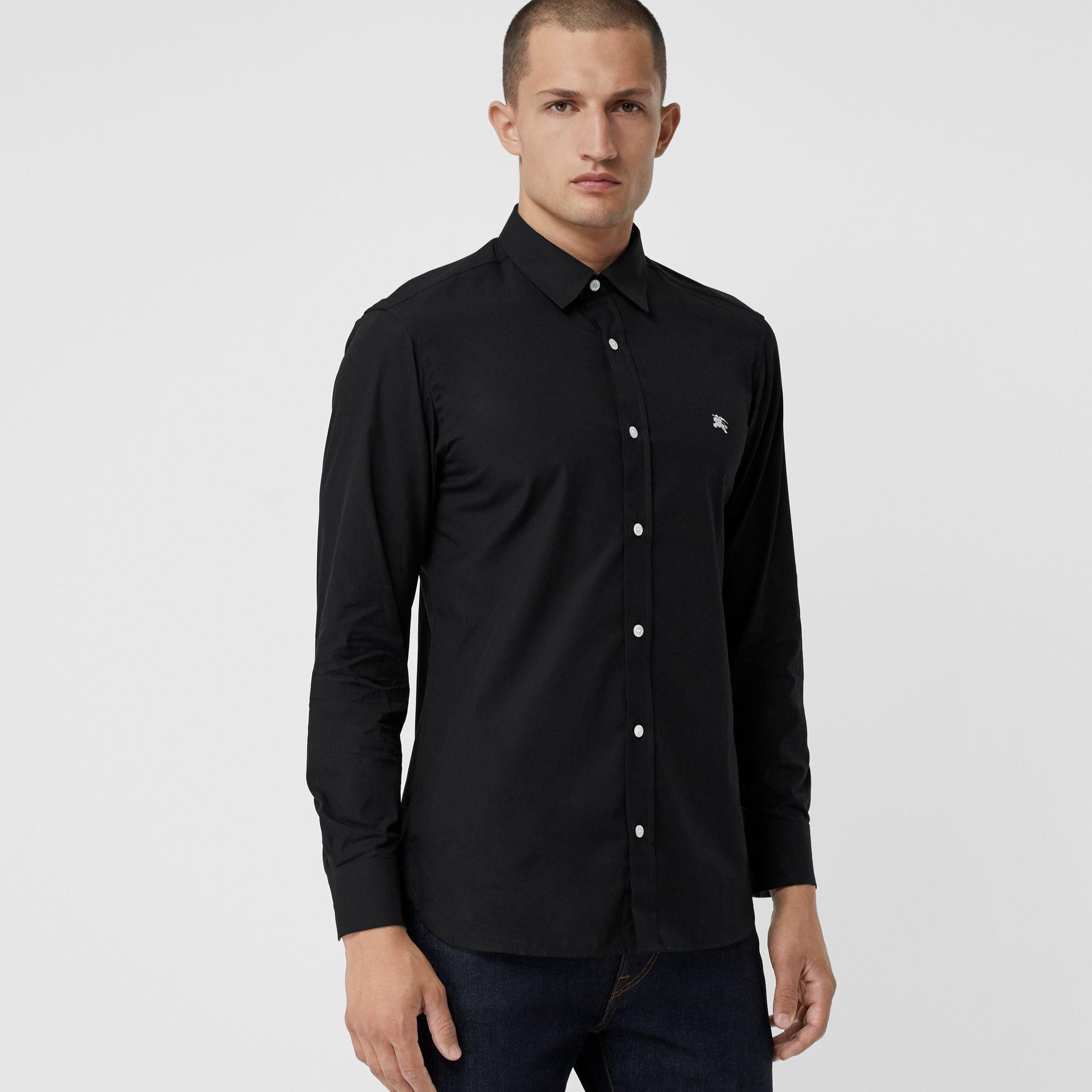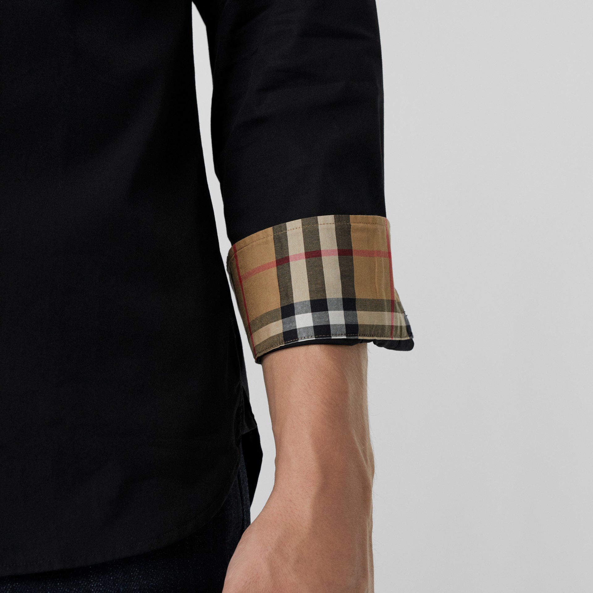 Shop Burberry Hemd Aus Stretchbaumwolle Mit Kontrastierenden Knopfen In Black