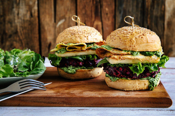Rote Bete Feta Burger Mit Ei Gruner Mojo Und Salat Marley Spoon