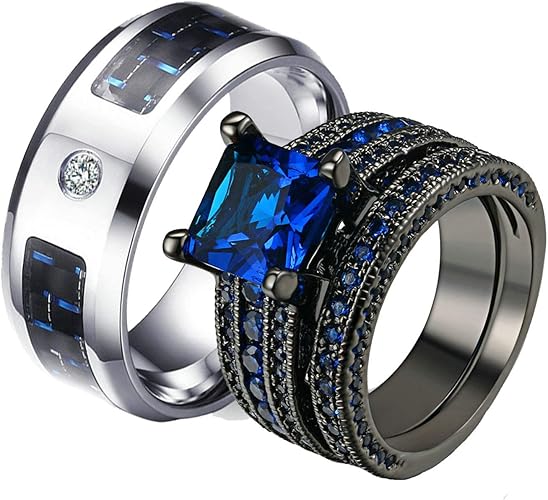Aeici Hochzeitsringe Paar Partner Ringe Fur Sie Und Ihn Edelstahl Verlobungsringe Paar Vergoldet Kohlenstofffaserring Und Blau Zirkonia Ring Stapelbar Silber Ringe Paar Amazon De Schmuck