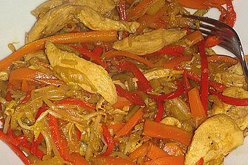 AsiaGemüsepfanne mit Hähnchen Ab und an meldet sich bei mir mal der Jieper nach asiatischen Aromen und den befriedige ich am Liebsten mit einer Pfanne voll würzig abgeschmecktem Gemüse in Kombination mit Hähnchen oder Rindfleisch, das ich vorher mariniere. AsiaHähnchenPfanne ( 1 Bewertungen) Aus der abgeriebenen Schale einer Zitrone, Olivenöl, Kurkuma, Currypaste, Mangochutney, Thymian, Kreuzkümmel, Rosmarin, Knoblauch und Majoran eine Marinade herstellen. Im Wok, der Pfanne der asiatischen Küche schlechthin, kommt zusammen, was zusammengehört Und das Beste WokGerichte sind schnell zubereitet.