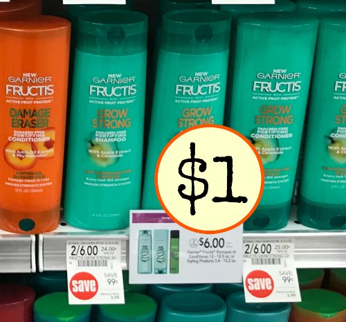 Description Parabenfree Fructis Daily Care 2in1 Shampoo &#amp;. Walgreens Deal Idea (Thru 10/31) Buy 3 Garnier Fructis Shampoo and/or Conditioners 12 – 125 oz $299 each Total = $7. Available for purchase online Garnier Fructis Grow Strong Shampoo, For Stronger, Healthier, Shinier Hair, 338 fl oz 48 $652 $652 (193 ¢/fl oz) NextDay eligible Garnier Fructis Grow Strong Conditioner, For Stronger, Healthier, Shinier Hair, 21 fl oz 1469.