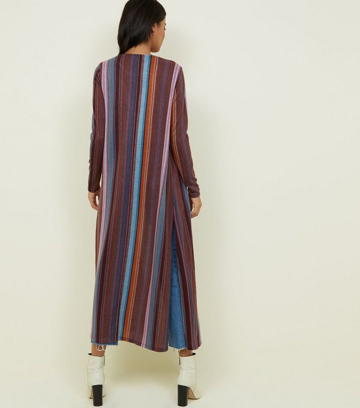 Apricot Rote Lange Strickjacke Mit Streifen New Look