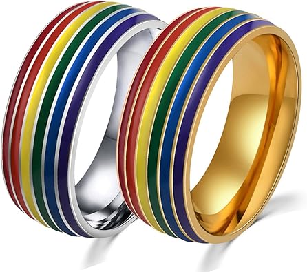 Beydodo Herren Ring Titan Gay Regenbogen Silber Goldringe Eheringe Hochzeitsringe Amazon De Schmuck