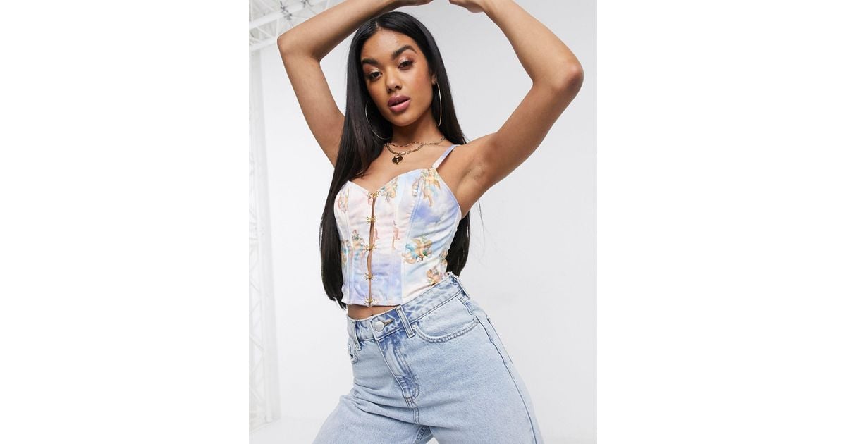 Asos Synthetik Lucia Mit Engelchen Bedrucktes Korsett Oberteil Mit Seitlichen Korsettstangen In Blau Lyst