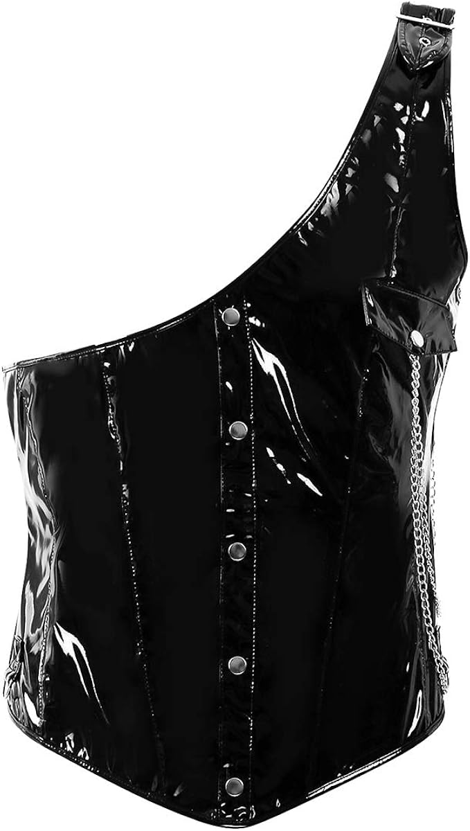 Dpois Herren Ein Schulter Top Shirt Korsett Mieder Steampunk Oberteil Aus Lack Leder Gothic Steampunk Kostum Fur Party Club Gogo Amazon De Bekleidung
