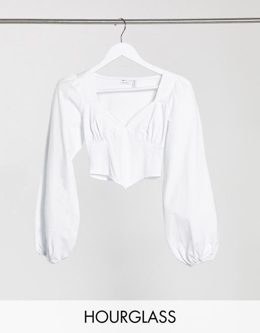 Kurzes Drapiertes Korsett Oberteil Aus Tull Mit Ballonarmeln In Weiss Missguided