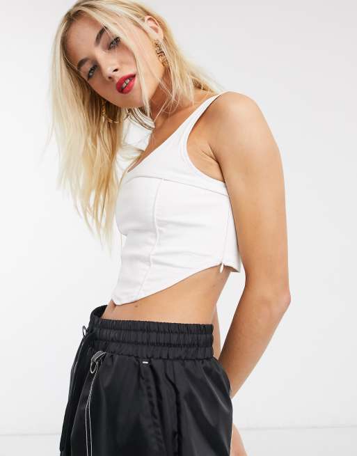 Bershka Kurzes Oberteil Mit Korsett Detail In Weiss Asos