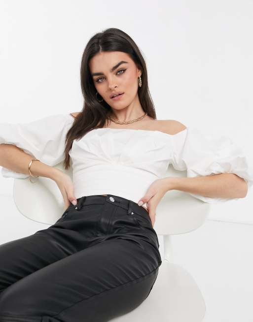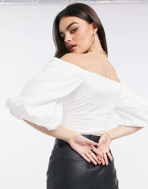 Vl The Label Schulterfreies Korsett Oberteil Mit Voluminosen Armeln In Weiss Asos