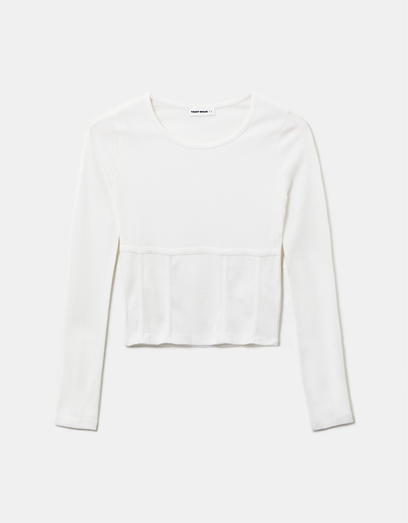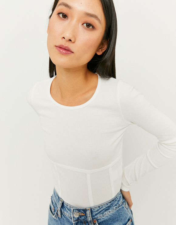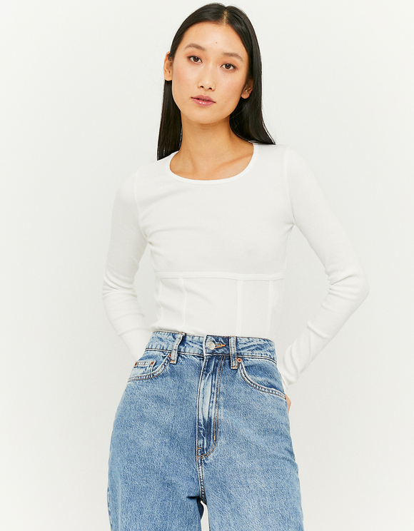 New Look Langarmliges Oberteil In Weiss Mit Korsett Nahten Evesham Nj